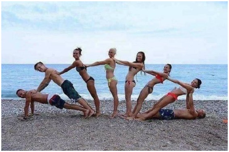 Es gibt wirklich nichts Besseres als den Nervenkitzel, mit den besten Freunden an den Strand zu gehen. Die Möglichkeiten für Spaß sind endlos – ob Sie nun epische Sandburgen bauen, sich in eine Partie Beachvolleyball stürzen oder sich auf eine spannende Schnitzeljagd begeben. Und wenn Sie Lust auf etwas Dauerhafteres haben, warum organisieren Sie nicht ein Gruppenfotoshooting? Wenn Sie diese Momente festhalten, bleiben sie nicht nur für die Ewigkeit erhalten, sondern Sie haben auch ein Andenken, an das Sie sich noch jahrelang erinnern können. Nehmen Sie zum Beispiel die Gruppe auf diesem Foto – sie haben sicherlich das Beste aus ihrem Tag gemacht, indem sie bei ihren Posen kreativ waren, und wir applaudieren ihrer Anstrengung.
