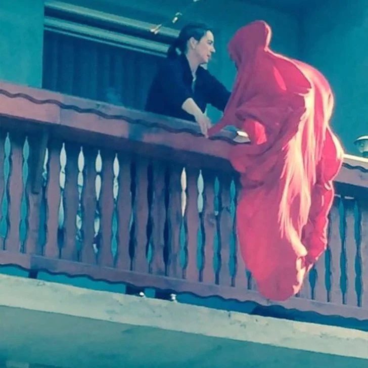 Diese unheimliche Szene scheint direkt aus einem bayerischen Horrorfilm zu stammen. Man kann die Angst fast spüren, als die junge Frau das Laken umklammert, ihre Nerven sind wahrscheinlich durch das, was wie der Sensenmann aussieht, der in der Nähe auftaucht, aufgewühlt. Apropos bayerischer Horror: Wenn Sie glauben, dass diese Region keine Gänsehaut verursachen kann, sollten Sie sich „Bunker of the Dead“ (2015) ansehen. Dieser Film spielt in der malerischen Stadt Oberammergau und zeigt Nazi-Zombies und einen klaustrophobischen Bunker. Nur ein Hinweis: „IMDb“ gibt ihm bescheidene 3,5 von 10 Punkten.